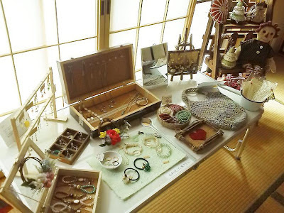 ゆきえさんのニット作品と私(すず)のビーズアクセサリー。